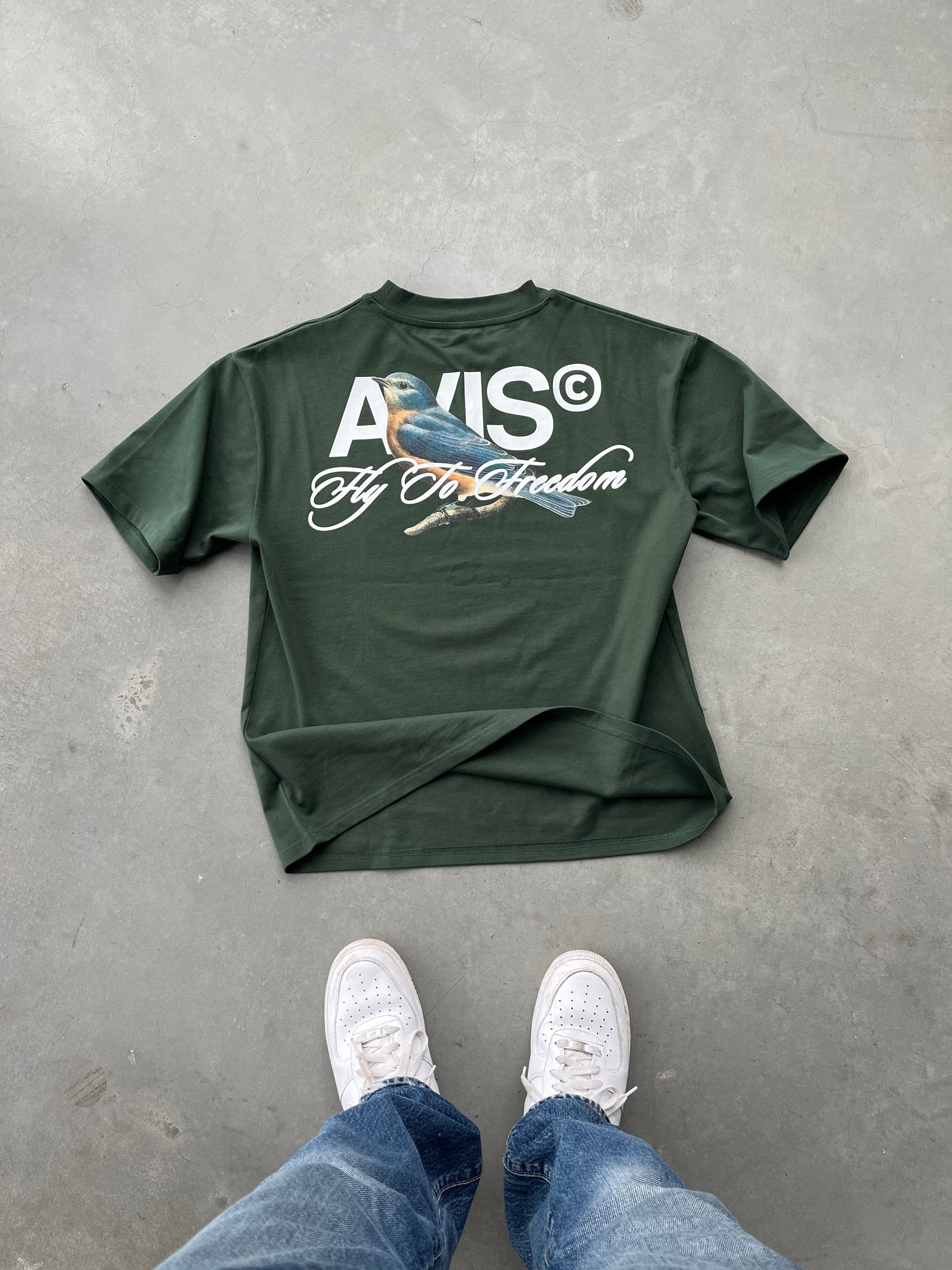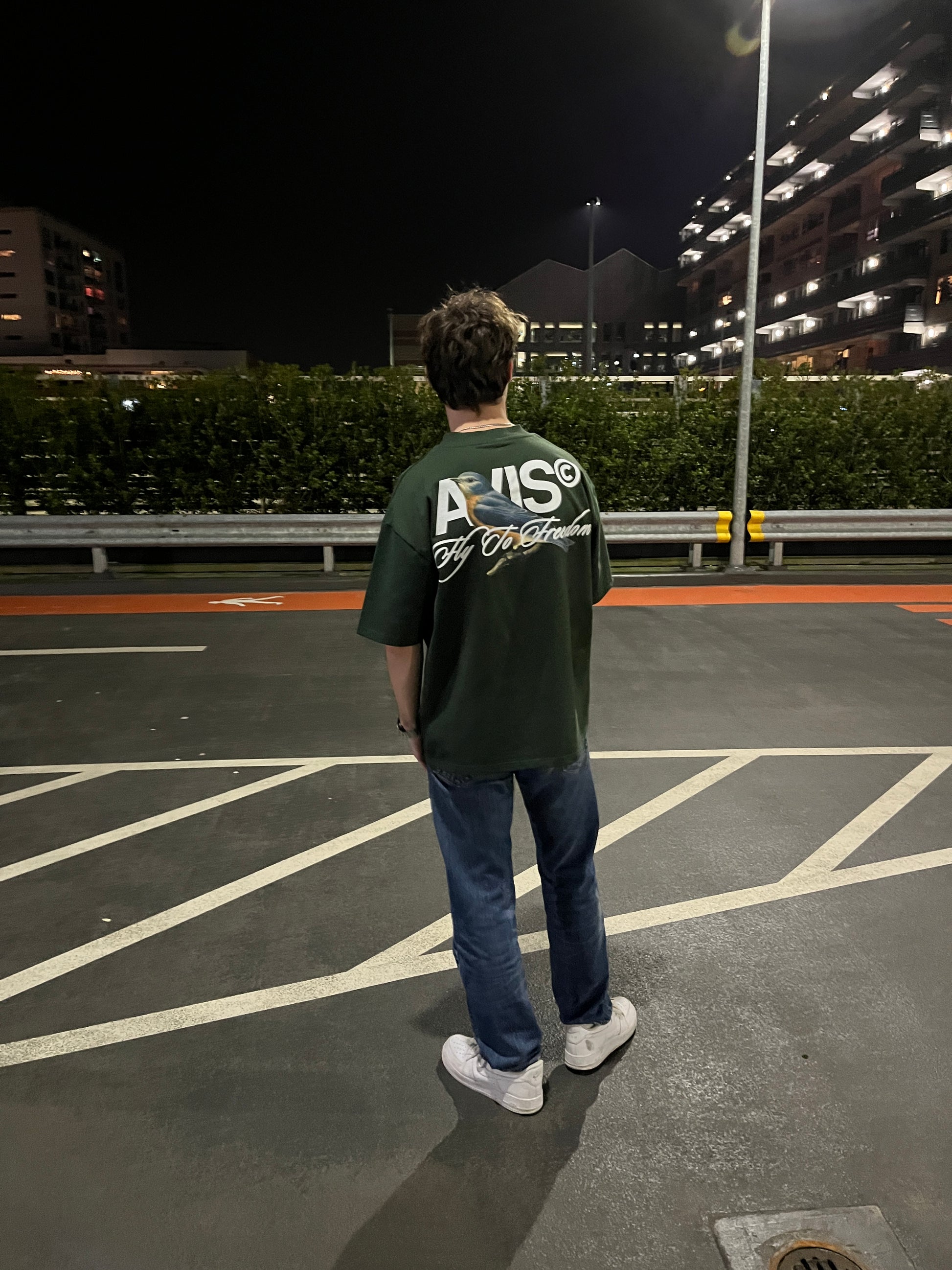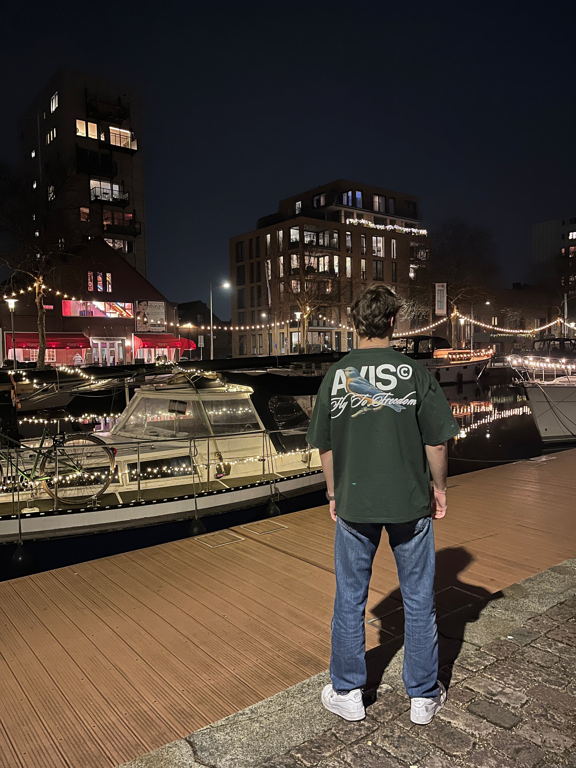 Onze FLY TO FREEDOM T-Shirt is een zwaargewicht 305gsm, 100% Katoen, enkele jersey. Op het shirt is ons logo geborduurd op de voorkant en op de achterkant is een graphic gescreenprint.